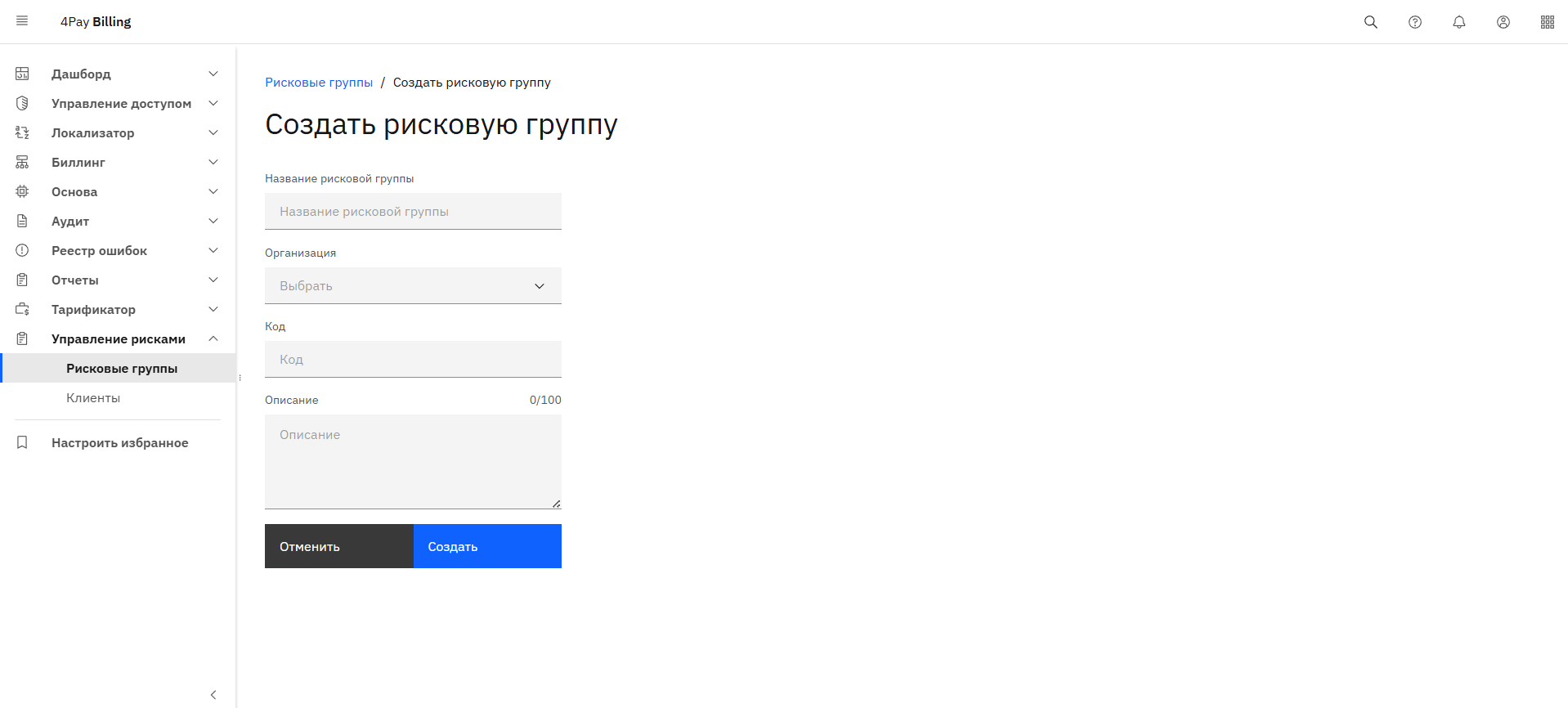 В разделе редактирования 3 можно изменить название рисковой группы, ее код (идентификатор) и описание.