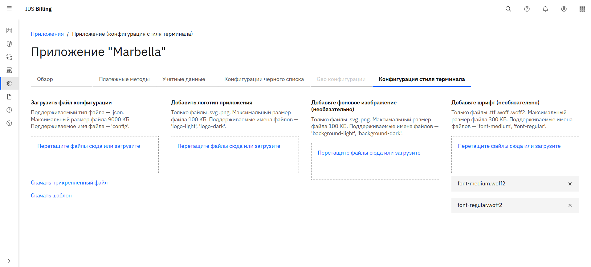 Во вкладке Конфигурация стиля терминала можно скачать шаблон конфигурации, а также добавить свой файл конфигурации, логотип, фоновое изображение и шрифт.