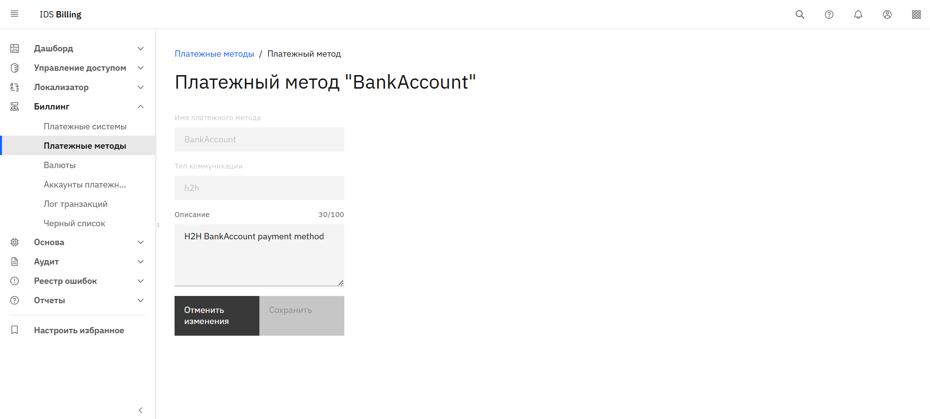Перейти к настройкам платежного метода можно нажав на его название. Здесь можно изменить только описание.