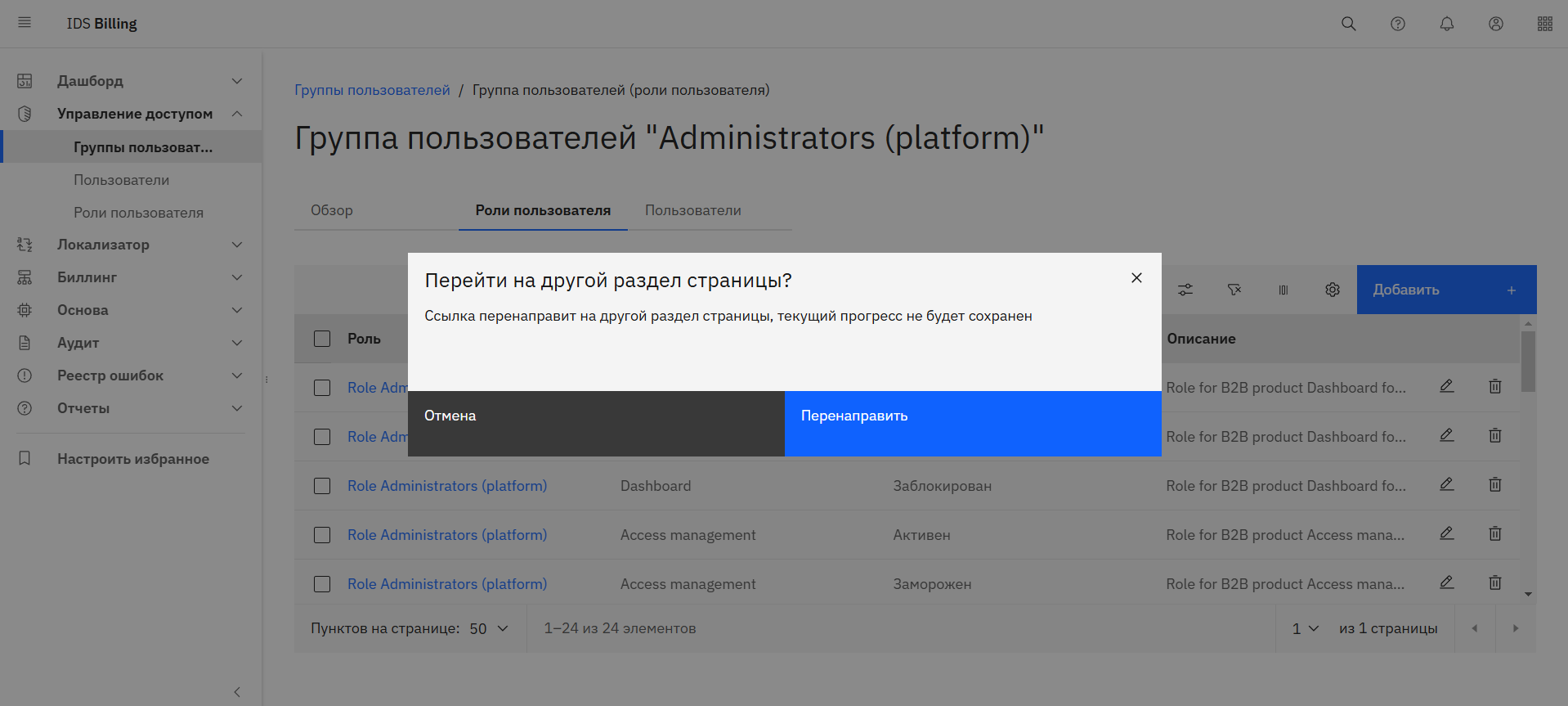 Нажатие на название группы перенаправляет в подраздел Роли пользователя.